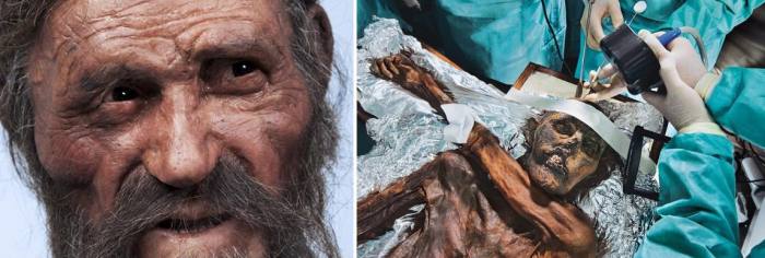 ФОТО 7: Так погибший в Альпах охотник бронзового века по имени Отци выглядел при жизни – суровый бородач. Поразительно, но его мумия спустя тысячелетия унесла жизни минимум 7 человек!