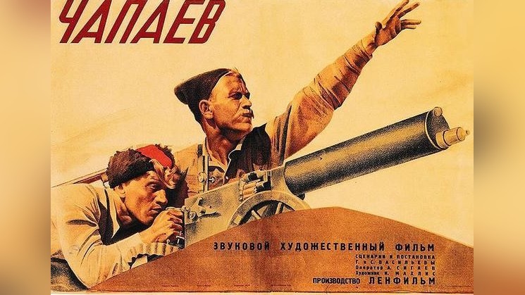 Кинофильм «Чапаев» братьев Васильевых вышел в 1934 году и его смотрела вся страна. Чапаева исполнял Борис Бабочкин. Сталин считал «Чапаева» лучшим советским фильмом и за два года посмотрел его более 30 раз. Фильм сравнивали с «Броненосцем «Потёмкин»» Эйзенштейна. В 1935 году фильм был признан в Соединенных Штатах Америки лучшим фильмом на иностранном языке. В 1978 году «Чапаев» включен в список 100 шедевров мирового кино.