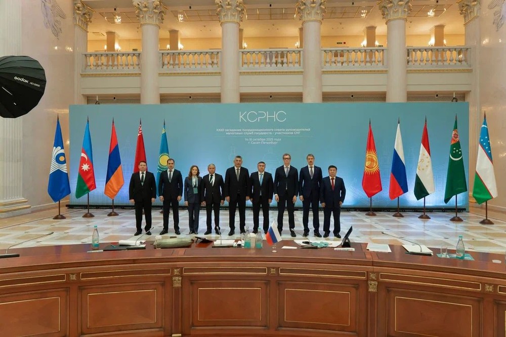 Речь председателя Государственной налоговой службы при Кабинете министров Кыргызской Республики Алмамбета Шыкмаматова на XXXII заседании Координационного совета руководителей налоговых служб государств-участников СНГ (14-16 октября 2025 года, Санкт-Петербург, Российская Федерация).
