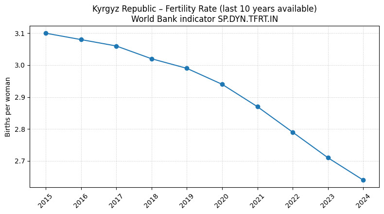 Однако ситуация будет меняться и меняться достаточно быстро. Общее показатели рождаемости и прироста населения еще достаточно высоки, но они частично объясняются уже сложившейся возрастной структурой населения, в которой высока доля женщин пиковых фертильных возрастов. Сам показатель фертильности (то есть количества рожденных на одну женщину) уже начал снижаться и делать это весьма круто, что демонстрирует следующий график (данные Всемирного Банка).